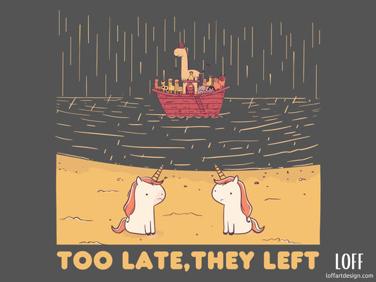 Too Late - Funny Unicorn Illustration - White glossy mug