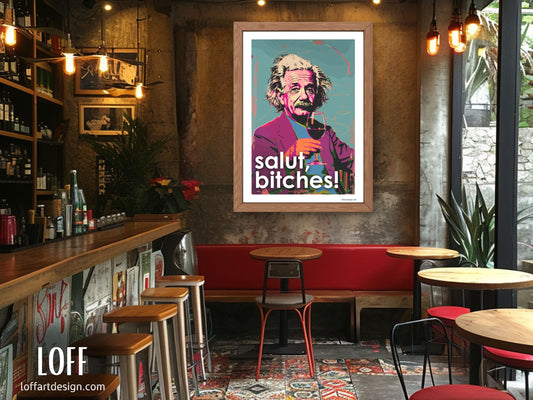 Einstein's Cheers Pop Art Print - Canvas - Wall Art - Home Decor - Gift- Original Illustration
