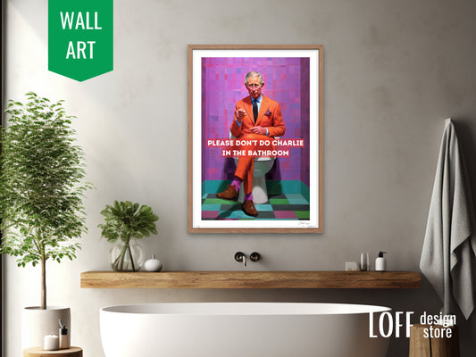 King Charles in the Bathroom Poster - A Royally Funny Gift Idea